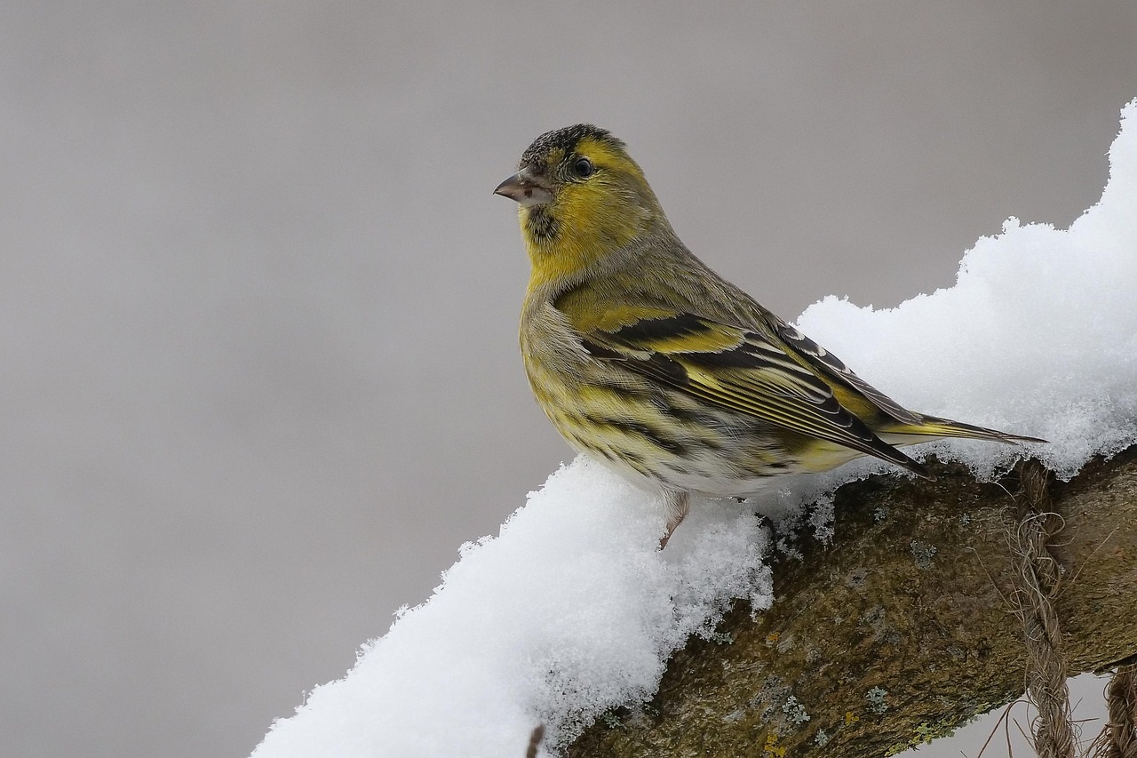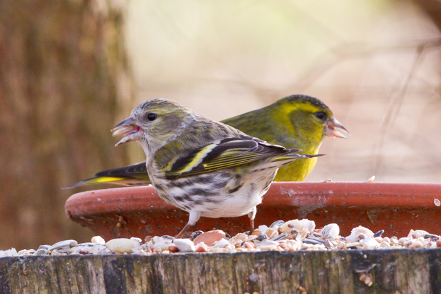 Im Winter besuchen Erlenzeisige gerne Futterstellen im Garten – oft auch in kleinen Schwärmen.