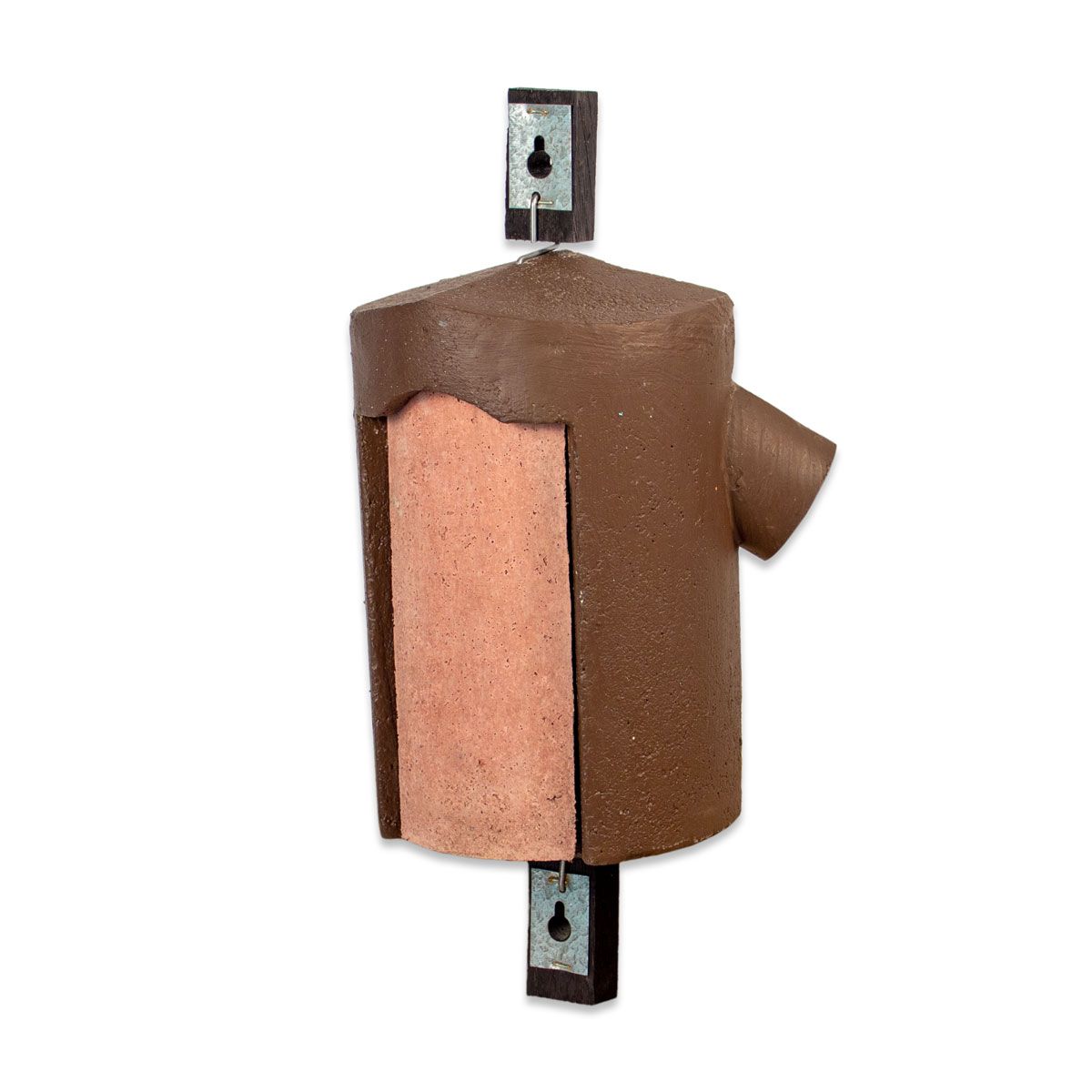 Die Befestigung der Höhle am Baumstamm erfolgt durch das Einschlagen von jeweils zwei Alunägeln durch die speziellen Aufhängeklötzchen.