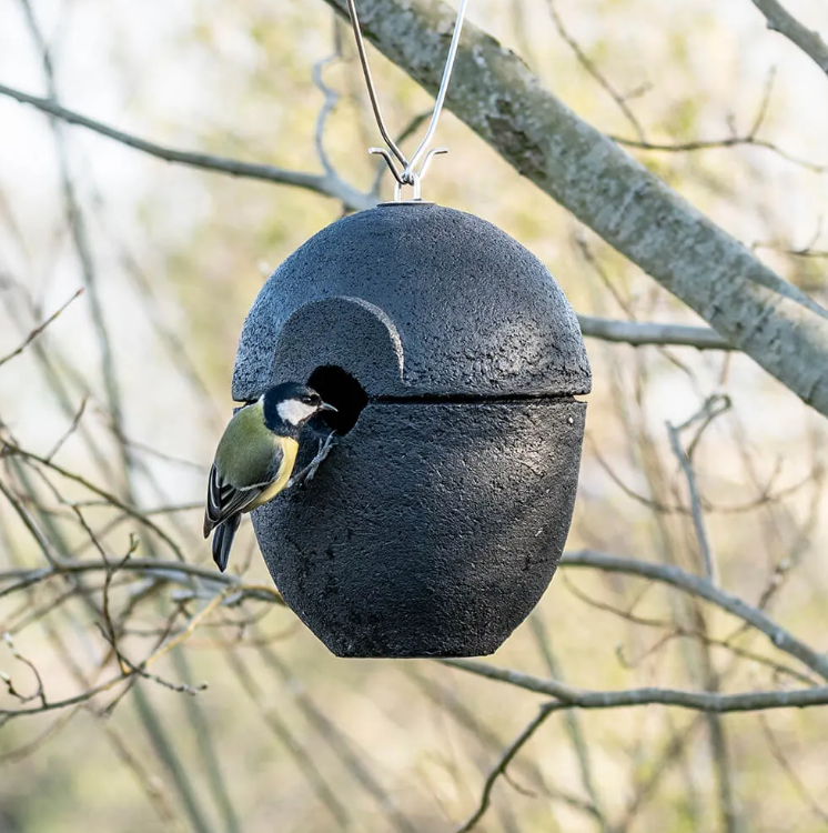 Diesee kugelige Nistkasten aus Holzbeton ahmt nicht nur die natürliche Nisthöhle perfekt nach, er ist auch besonders ansprechend gestaltet. Der Nistkasten besteht aus zwei Teilen und lässt sich problemlos zusammensetzen. Mit dem mitgelieferten stabilen Bügel können Sie ihn an einem Ast oder an einer anderen Stelle aufhängen.
