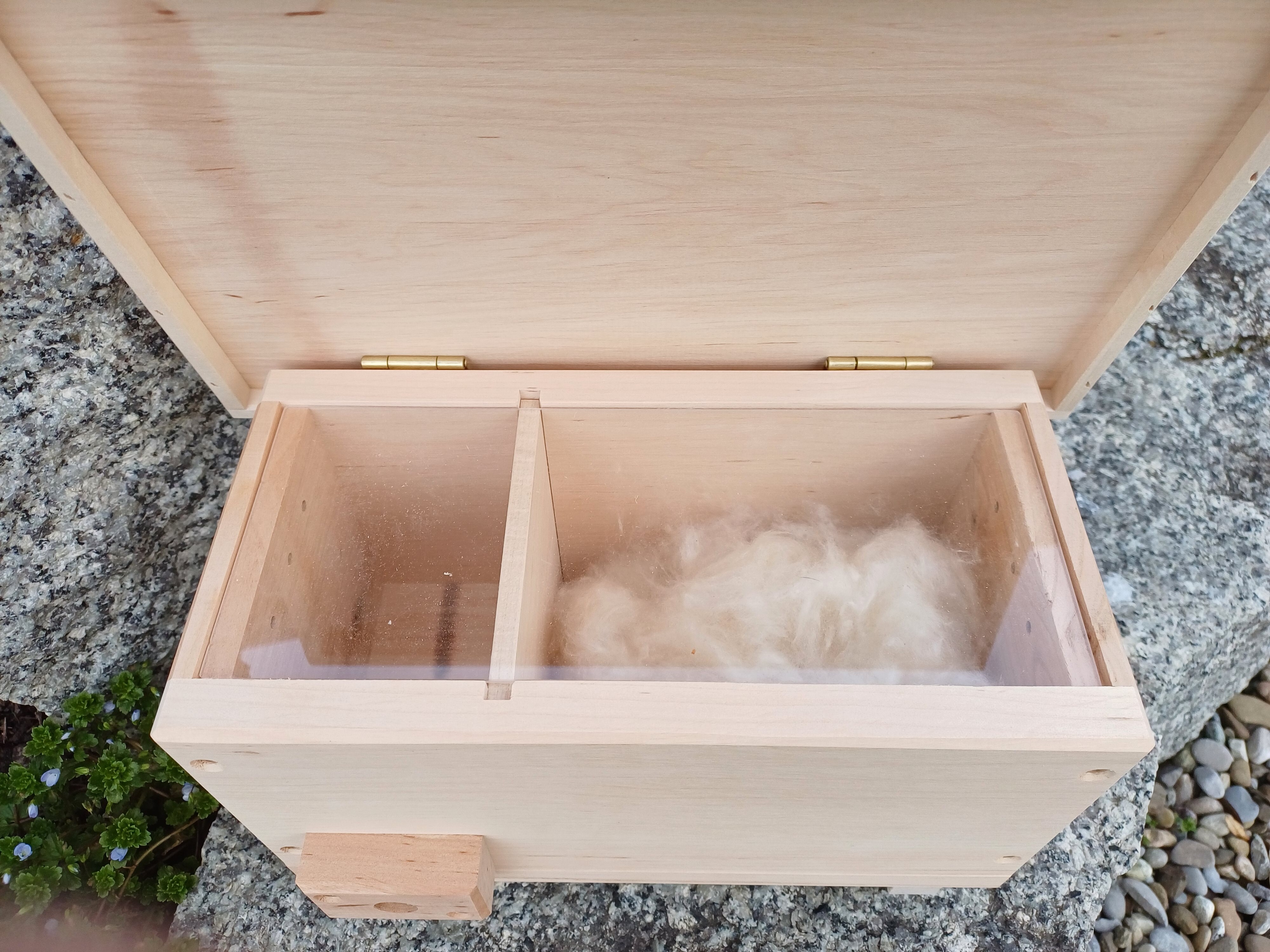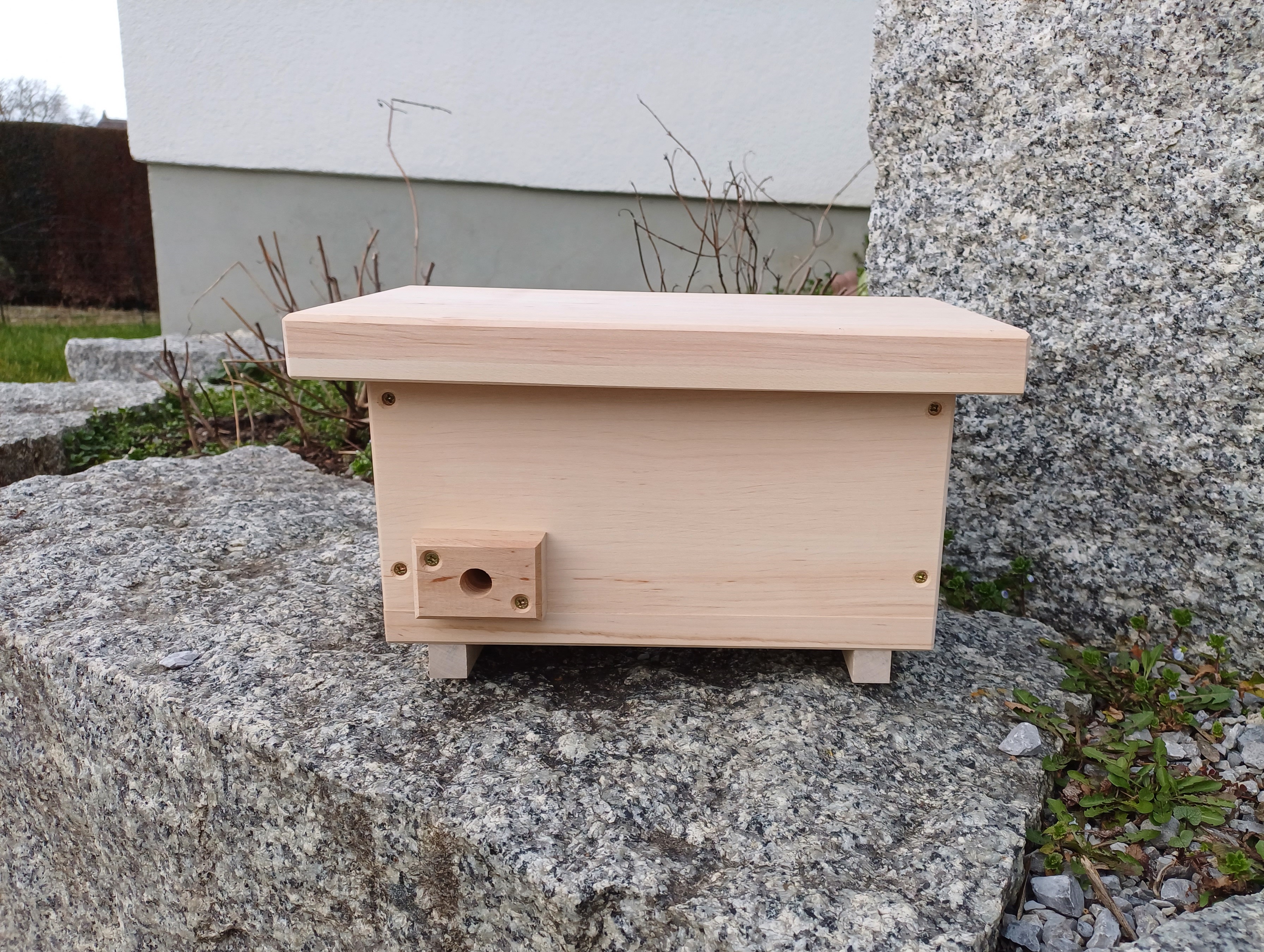 Dies ist ein handgefertigter Lebensraum aus Holz, um das Nisten von Hummeln in Ihrem Garten zu fördern.