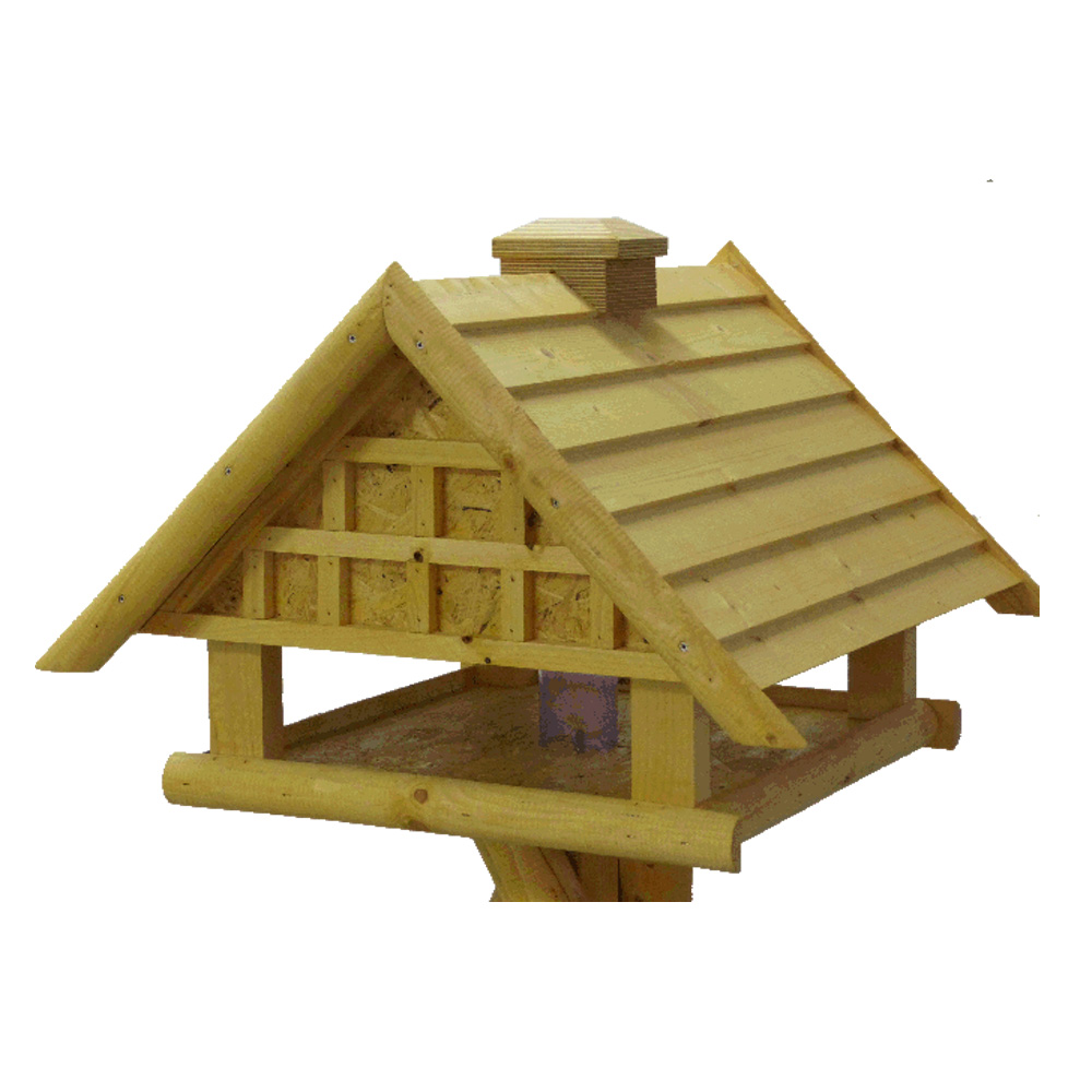 Massiv verarbeitetes Vogelfutterhaus mit Silo.