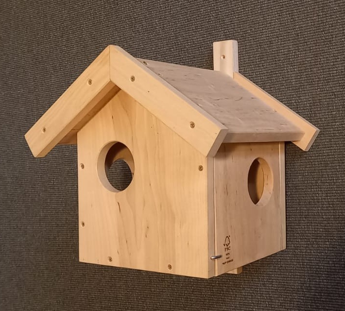 Sorgfältig verarbeitetes Haus für Eichhörnchen aus Massivholz.